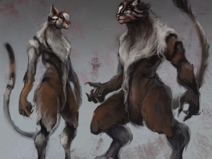 The Veilstorms changed felines forever. Lithe but powerful, the Cait Sith are fiercely unforgiving in their defense of themselves or their kin when threatened. They distrust most other races deeply, and mockingly call them the Furless. Blessed with incredible memories and a sarcastic streak, each member of the Cait Sith is an historian, able to recall events from long ago with a dry wit. The Cait Sith are fanatical in their devotion to a cause, and recall with gratitude how Arthur was willing to sacrifice himself to save a member of their race. In return, they would lay down their lives for King Arthur, and call it an honor.